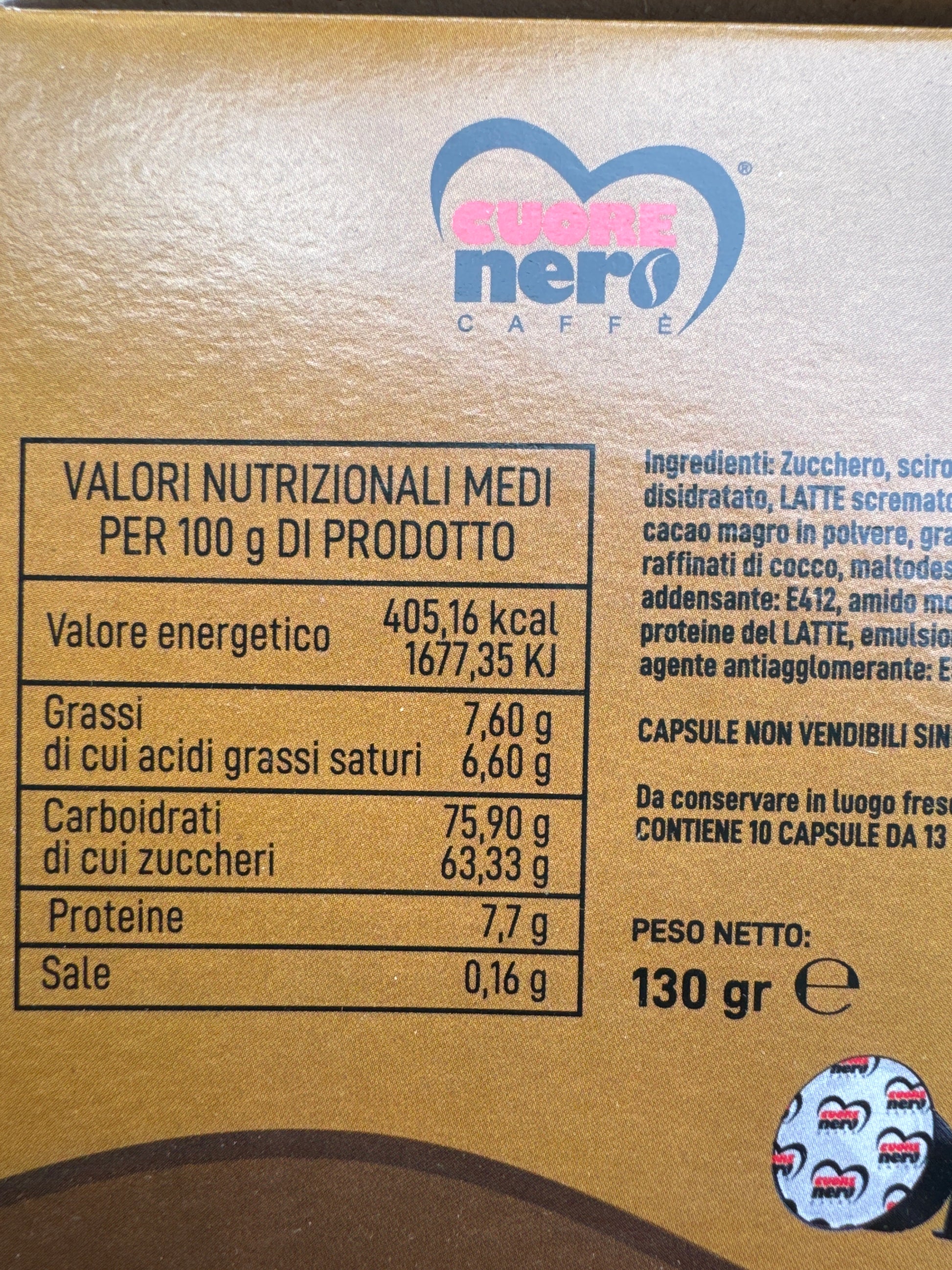 Assapora la dolcezza delle Capsule Cuore Nero Twist, con preparato solubile al gusto biscotto e caramello, compatibili con tutte le macchine Nescafé Dolce Gusto®. Perfette per una colazione golosa o una pausa pomeridiana, offrono un aroma avvolgente e una cremosità irresistibile.