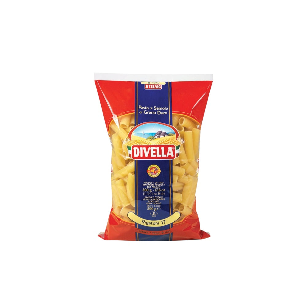 Aussen gerippt und mit grossen Rillen versehen, sind Rigatoni speziell für Rezepte mit vielen Gewürzen und besonders schmackhaften Geschmack hergestellt.